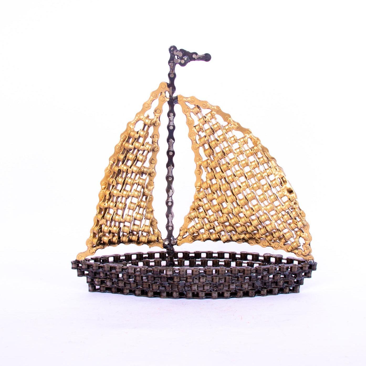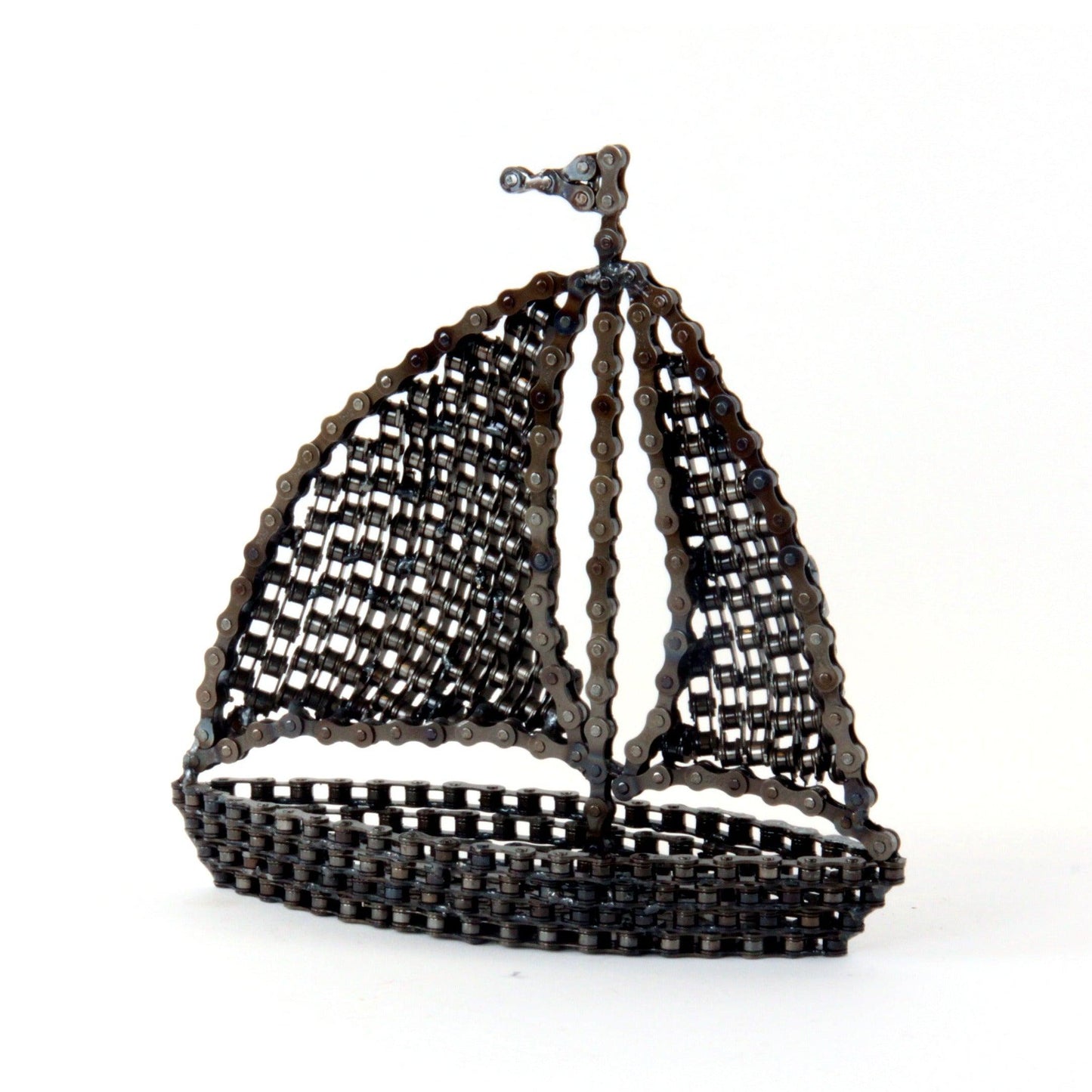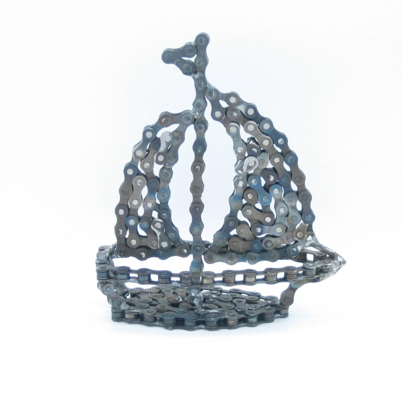 A boat sculpture is a perfect gift for those who love to travel, whether they're on vacation, on a business trip, or just up the shore. The boat sculpture is made of bicycle chains. It's the perfect gift for any ocean-lover in your life.