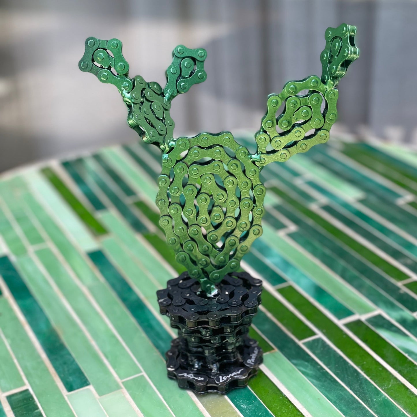 A Modern-Art sculpture of a Cactus.