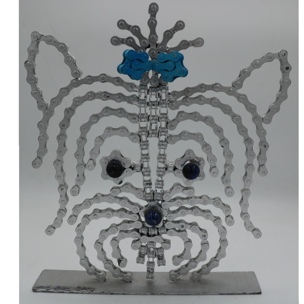 The sculpture is made of clean and painted bicycle chains