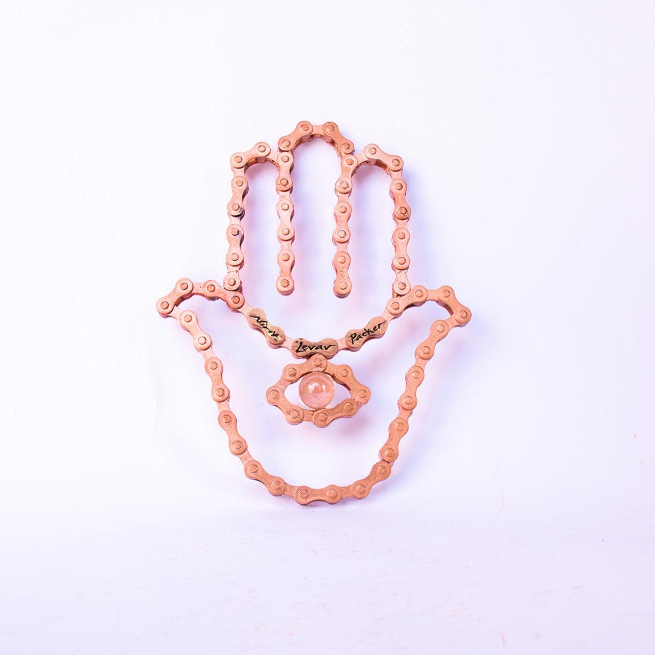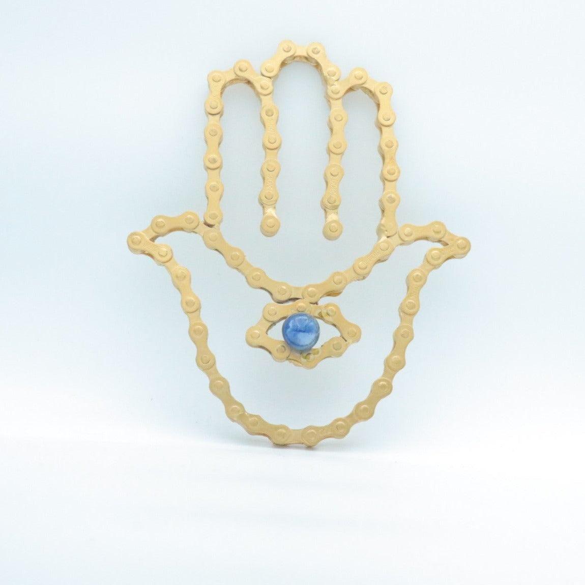 The open right hand is an image recognized and used as a sign of protection. The Hamsa sign is believed by Middle Easterners to provide defense against the evil eye.